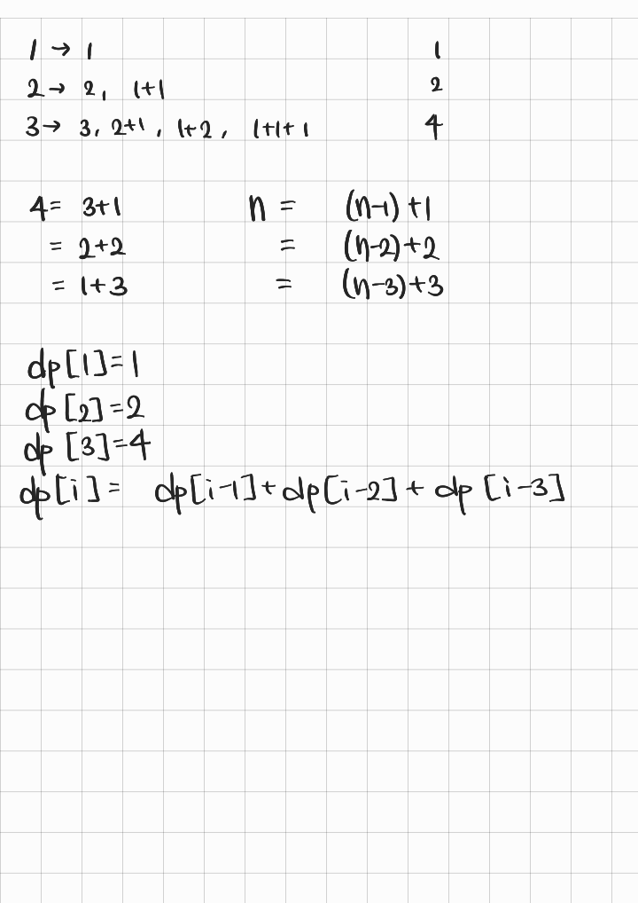 dp[x] = dp[x-1] + dp[x-2] + dp[x-3]