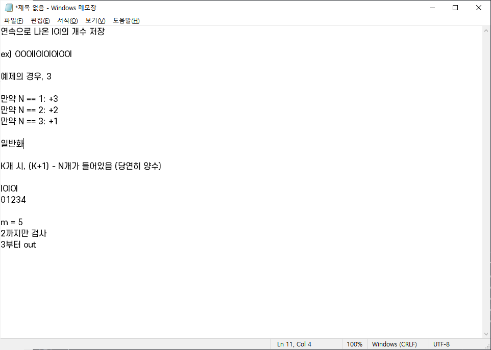 뭐가 다르냐면?.. 흠.. record 리스트를 선언해서 거기에 IOI 개수를 담고 나중에 계산해준 것과, 문자열 s를 리스트로 받아서 슬라이싱 대신 문자열 합으로 비교해준 것? 솔직히 크게 차이 없고 오히려 메모장 아이디어가 더 적어보이는 거 같은데 잘 모르겟당..